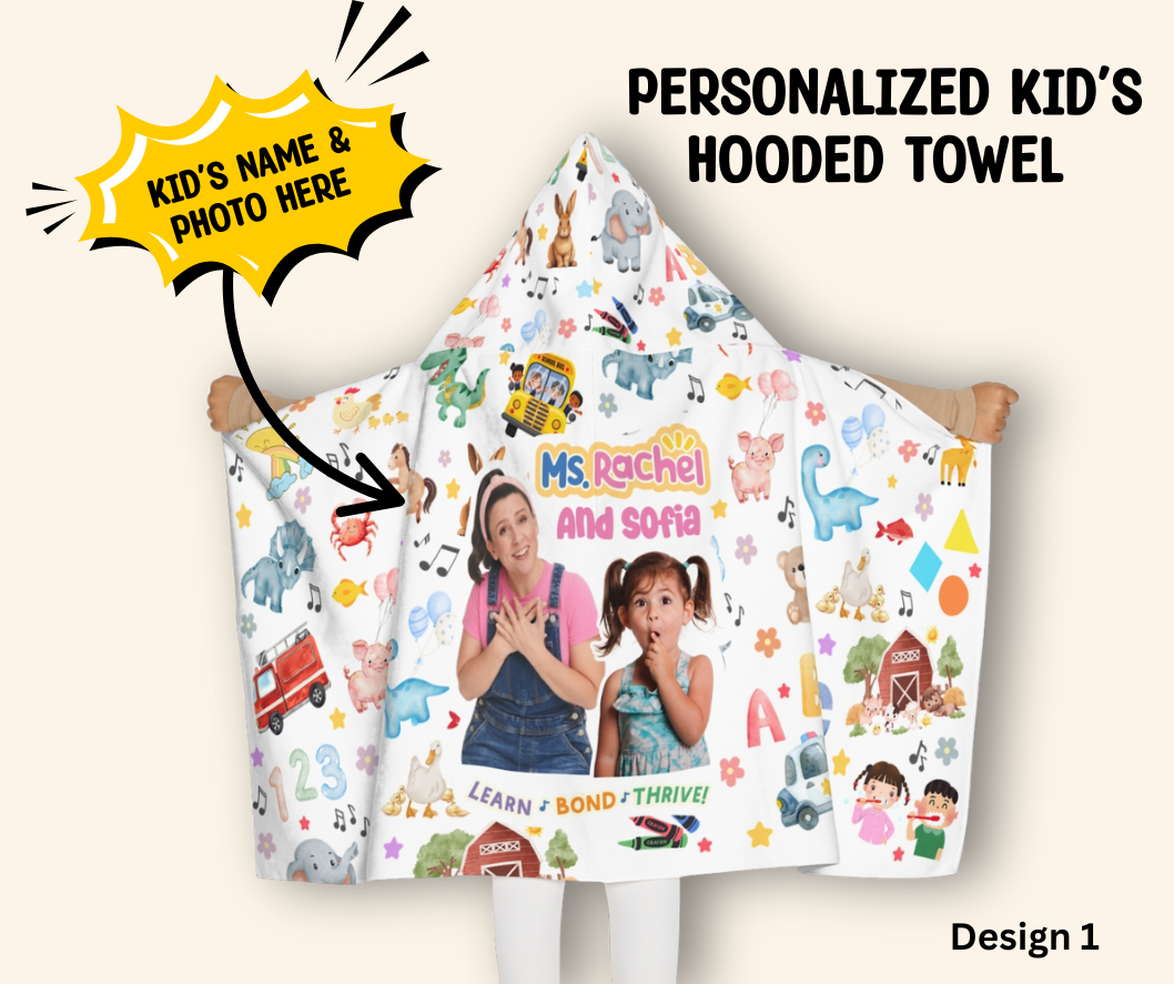 Personalized Kids Hooded Towel with Name & Photo, Custom Ms Rachel Bath Towel, Towels for Kids, Personalized Beach Towel