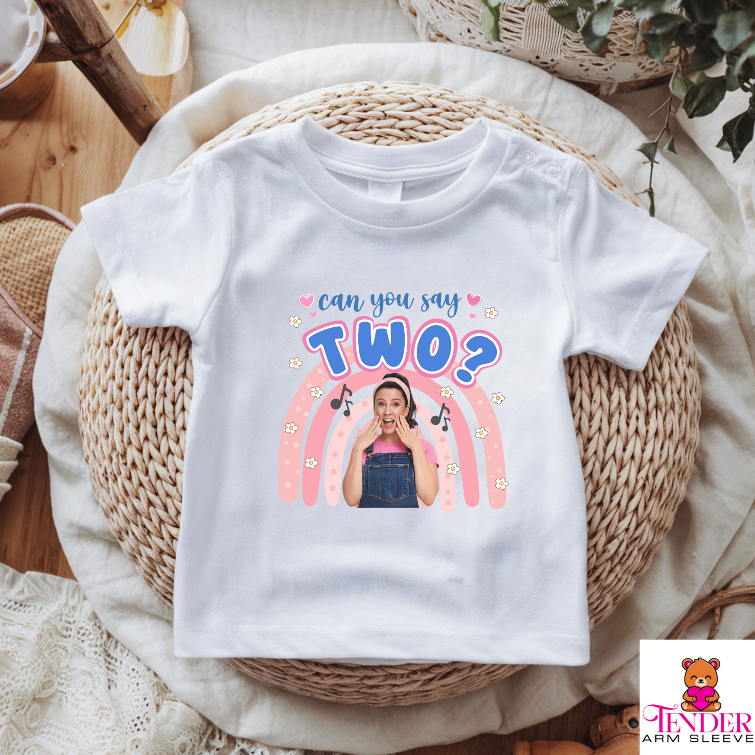 Can You Say TWO Toddler Short Sleeve Tee – Ms. Rachel 2nd Birthday Shirt, Milestone Outfit