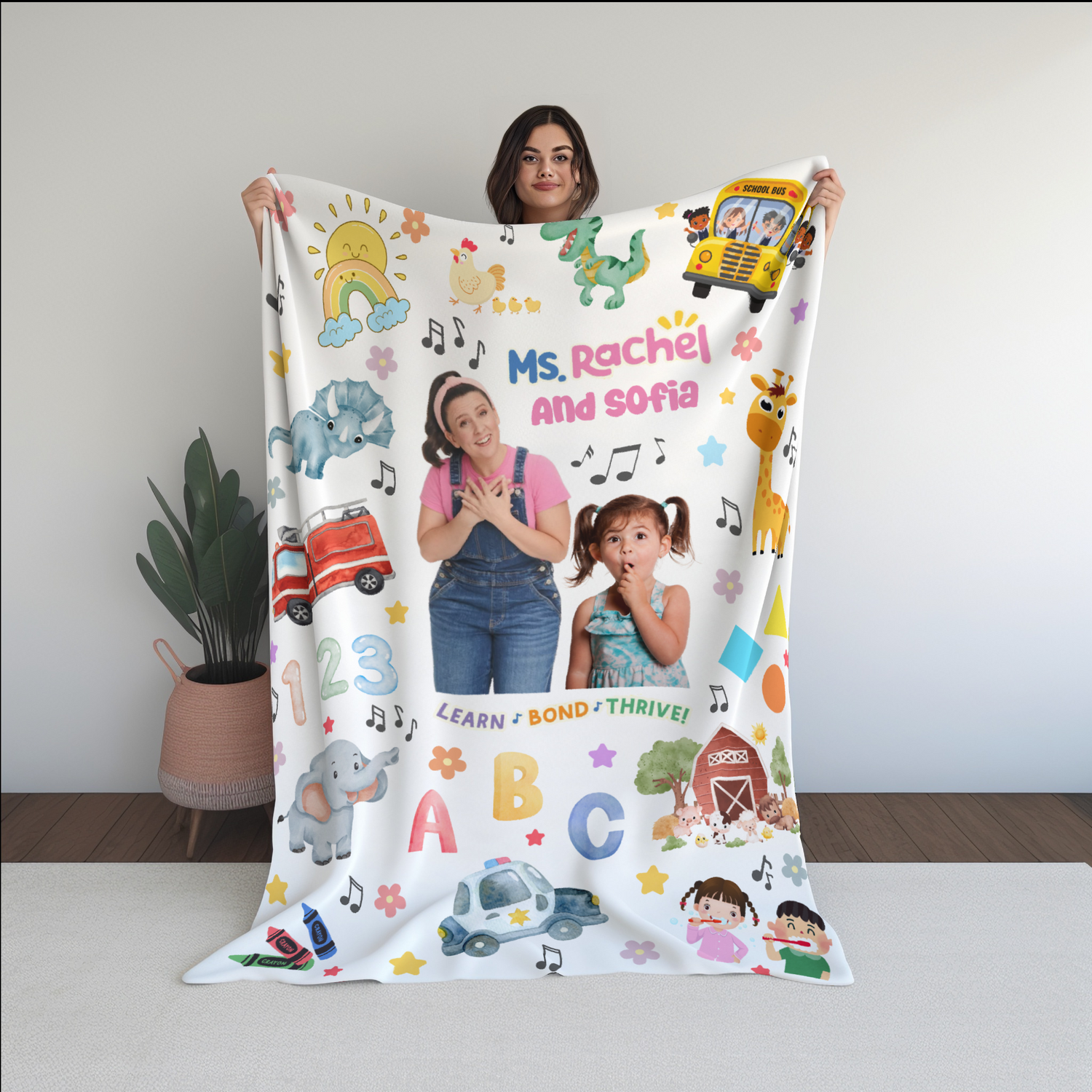 Make bath time extra special with a soft, custom towel featuring your child’s name and photo alongside Ms. Rachel! Perfect for everyday use, pool days, or as a unique gift, this towel brings comfort, fun, and a big smile to every splash and snuggle